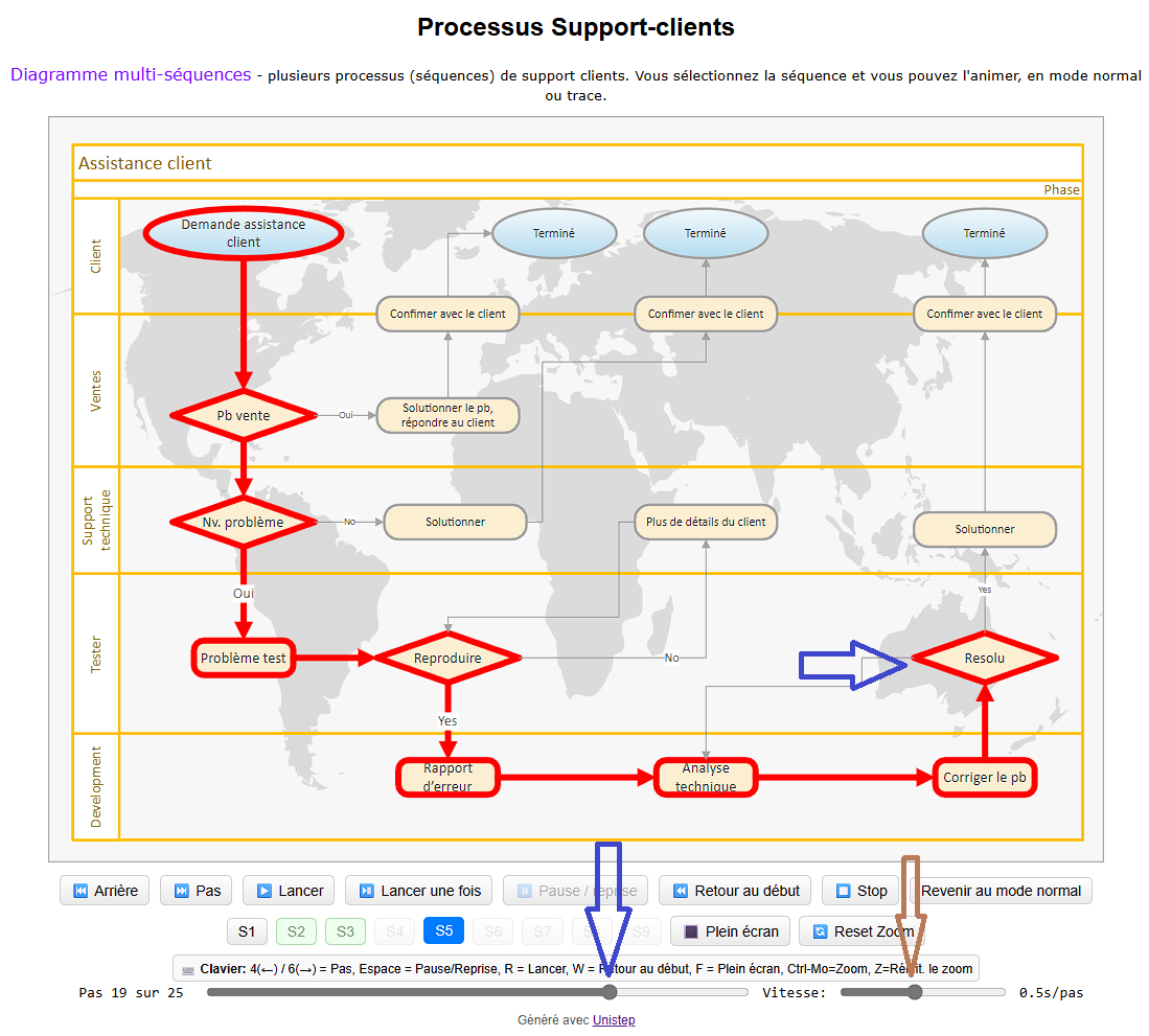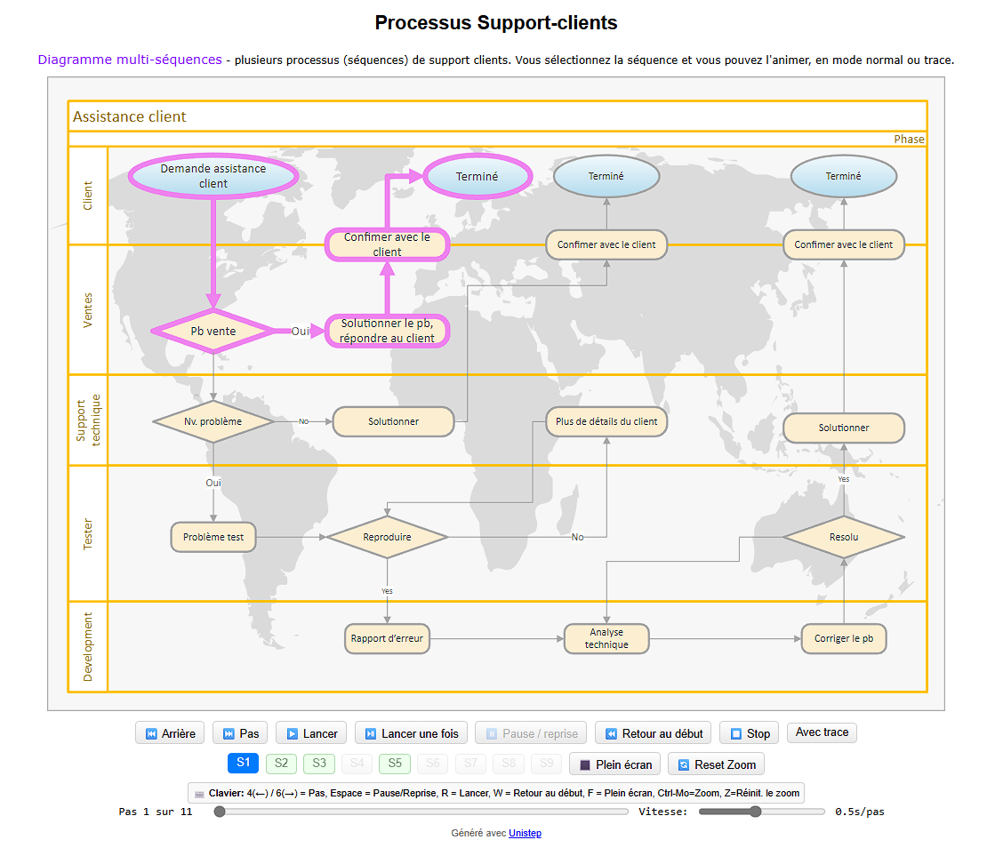 Créez des diagrammes de processus animés et interactifs et exportez-les en fichiers HTML autonomes que tout le monde peut ouvrir dans son navigateur. (Pas besoin de Visio.)