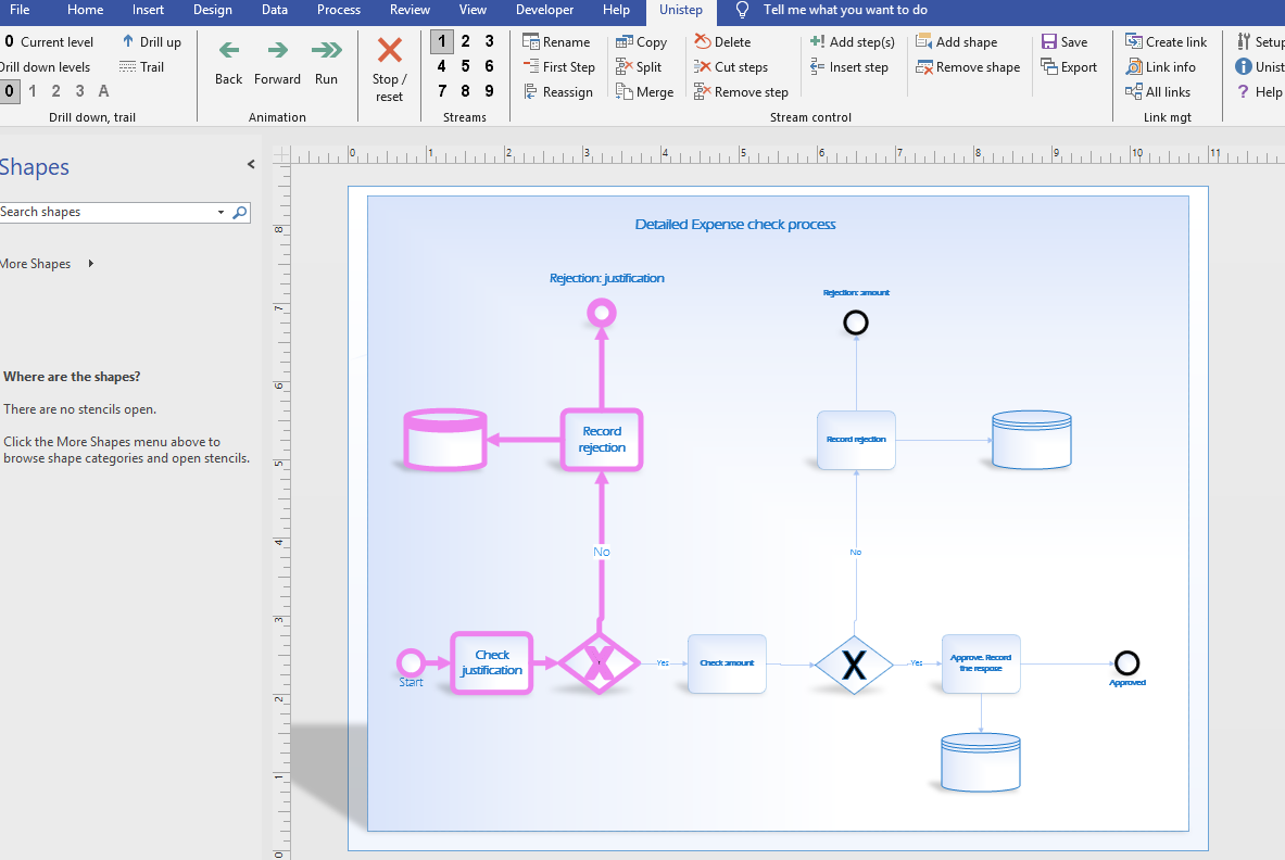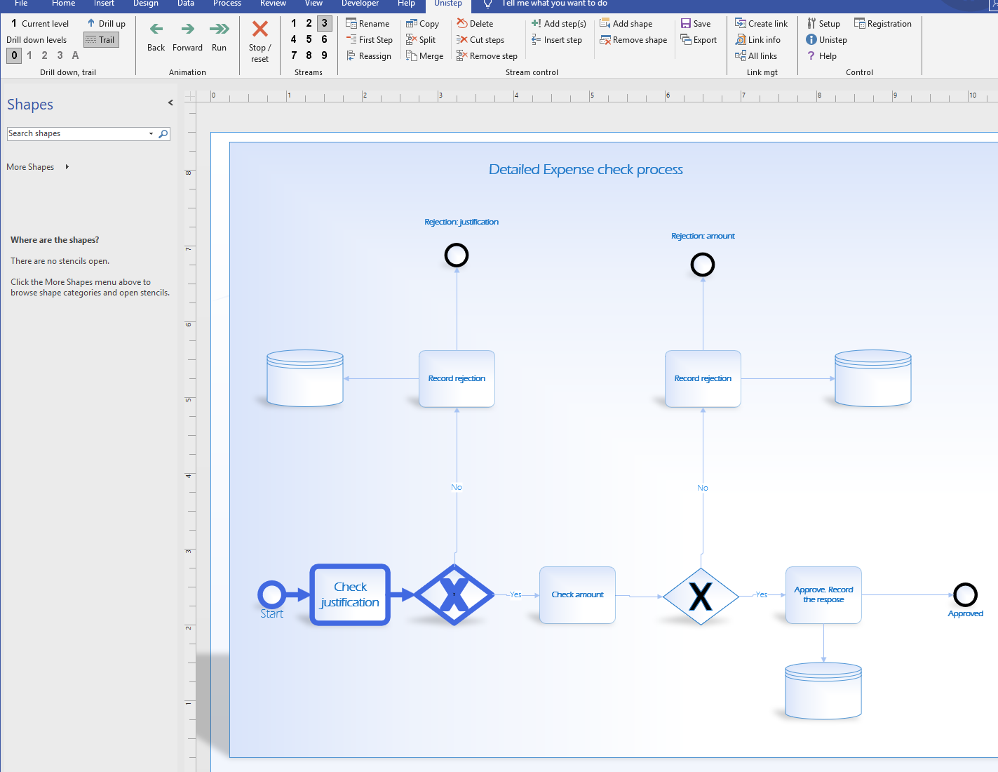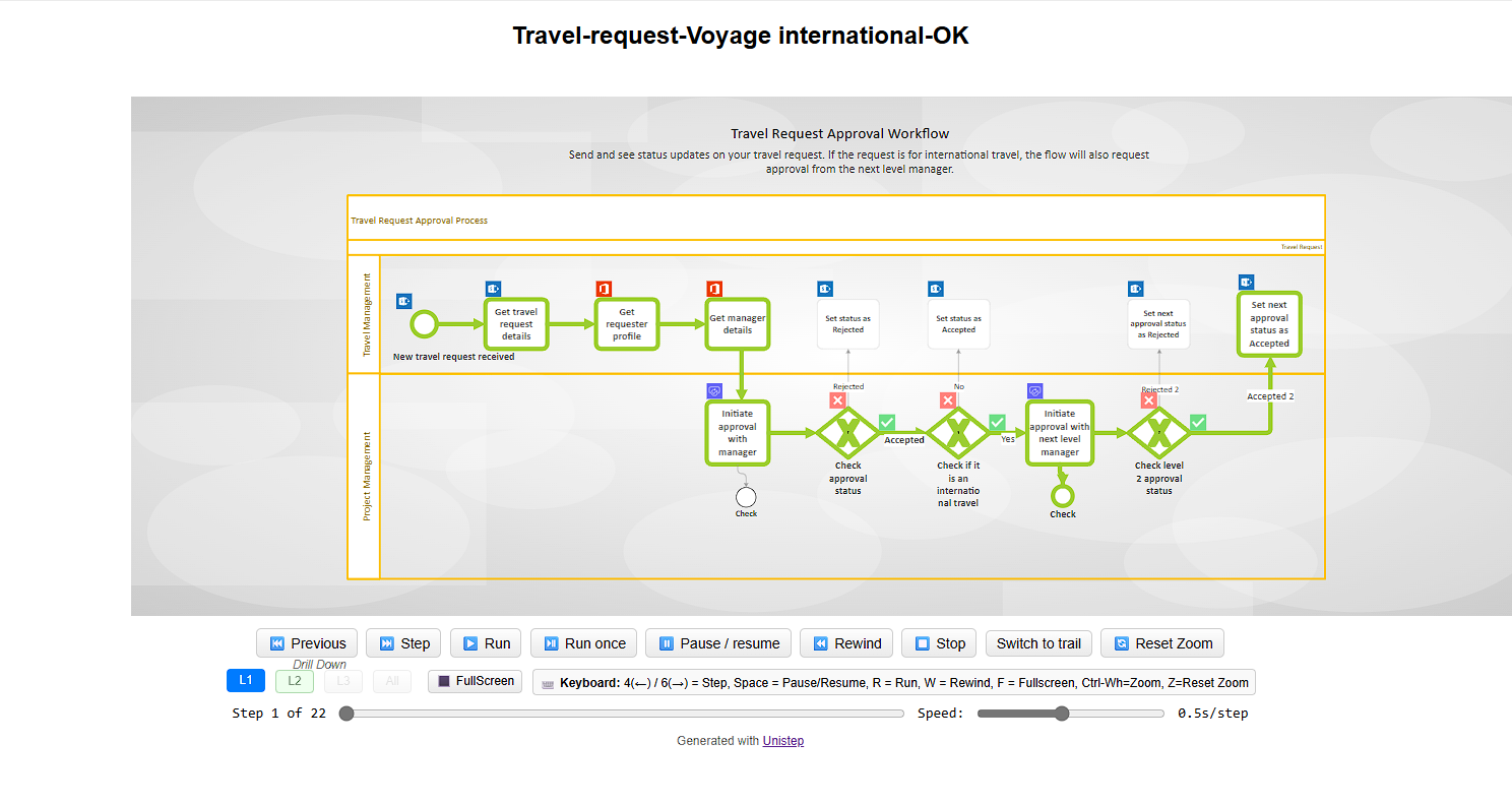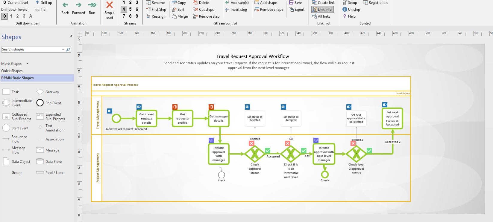 À partir d’un modèle Microsoft Visio, le premier analyste cartographie le processus global : « Demande refusée », « Demande approuvée », etc.