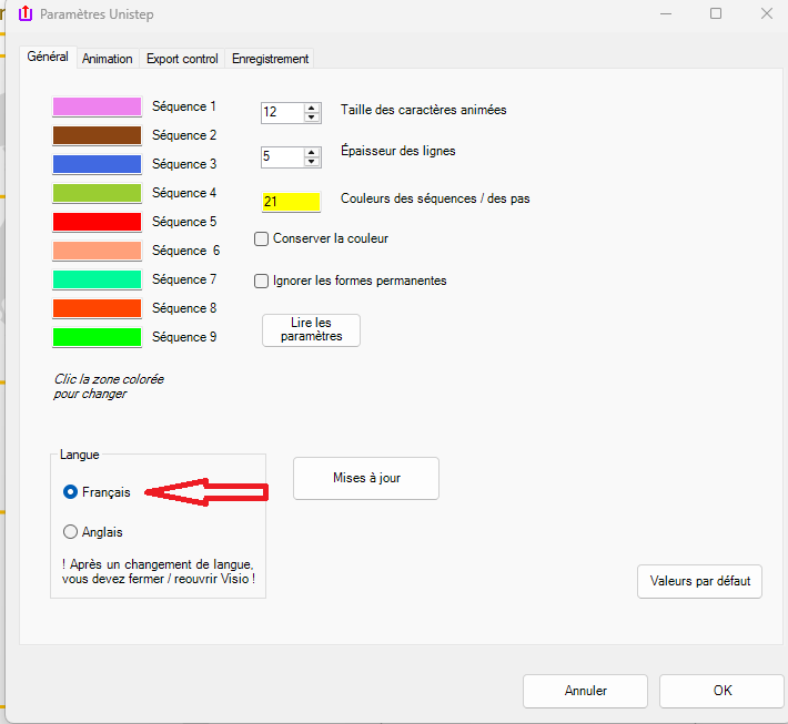 l’exportation est désactivée ; Unistep reste toutefois entièrement